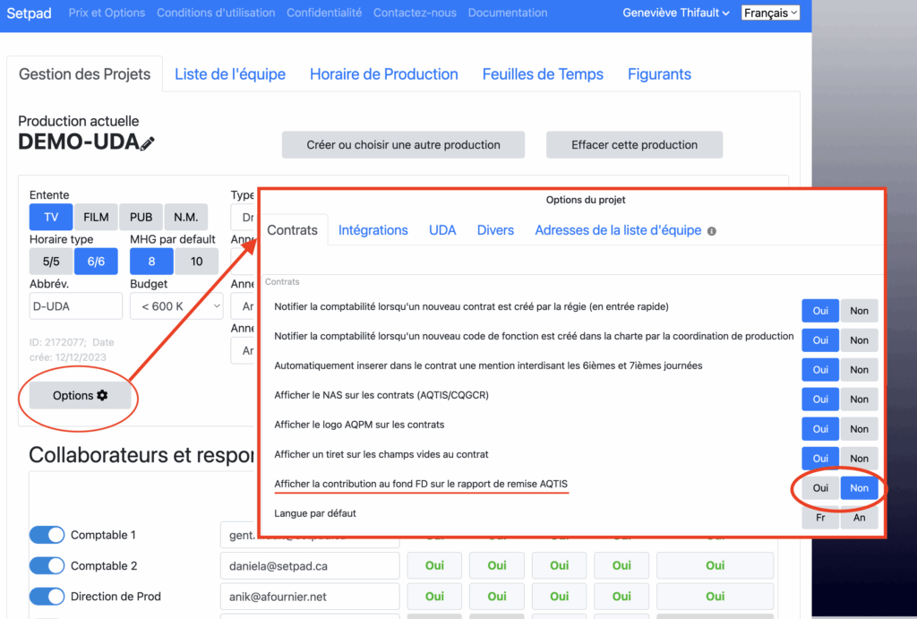 Vous pouvez choisir d’afficher ou pas la contribution du fond FD sur le rapport PDF de remise AQTIS. Allez dans les options du projets et sélectionner si vous souhaiter l’affichage ou non de cette case sur votre formulaire de remises. Assurez-vous de sauvegarder votre sélection.