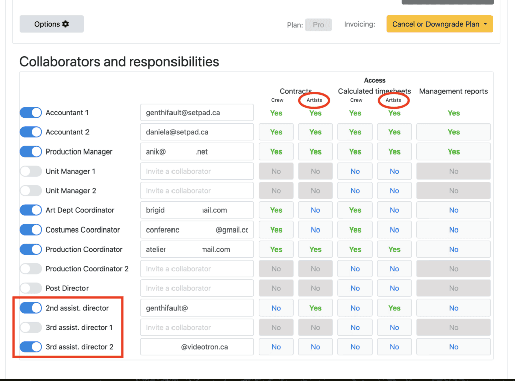 You will find that you can invite, in the same way as for other collaborators by entering their email address, three new collaborators: second Assistant Director and two third Assistant Directors.